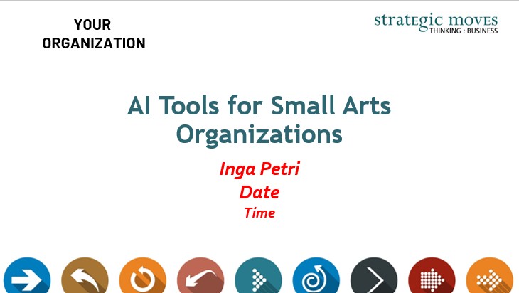 I was grateful to be invited by Business/Arts’ artsvest national program to develop and present a brand new 90-minute workshop on AI Tools for Smaller Arts Organizations. This workshop was first presented virtually to a national live audience of about 65 participants on October 8, 2025.